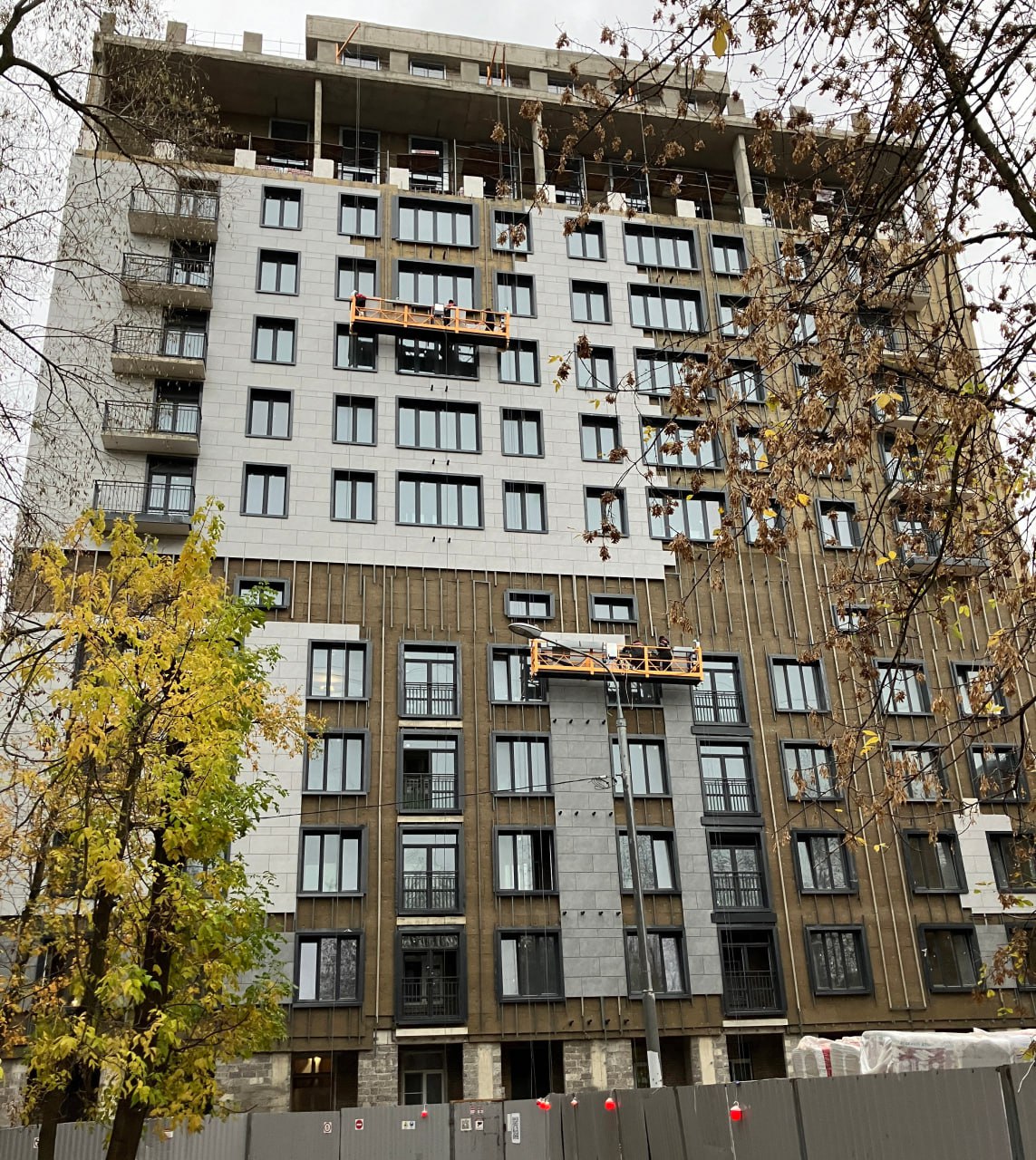 Я уже писал три года тому назад о том, что увидел на бульваре Матроса Железняка то, как надстраивают пятиэтажный дом 1957 года постройки рядовой московской серии без отселения жильцов. Работы идут не быстро, но вот в октябре я оказался там и увидел, что идёт отделка фасадов.