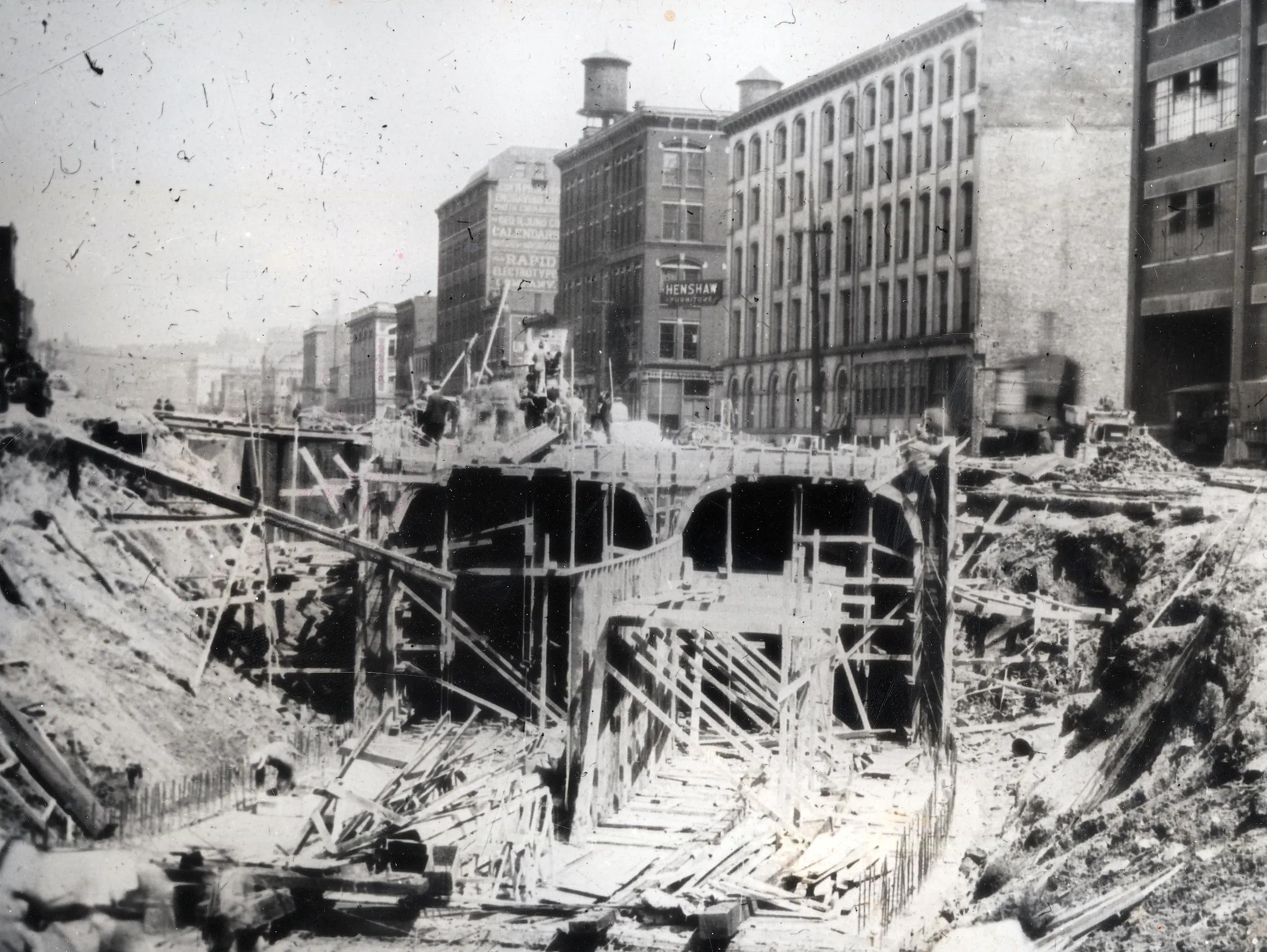 Стройка началась в 1920 году и продолжалась до 1929-го. За это время построили 9,6 км линии, из которых 3,5 км — в туннелях, а также 6 подземных станций. Но сначала инфляция после Первой мировой подкосила проект, затем начались политические разногласия, против метро выступило автолобби, а вишенкой на торте проблем стала Великая депрессия — она забила последний гвоздь в крышку гроба. Стройка встала и стоит по сей день.