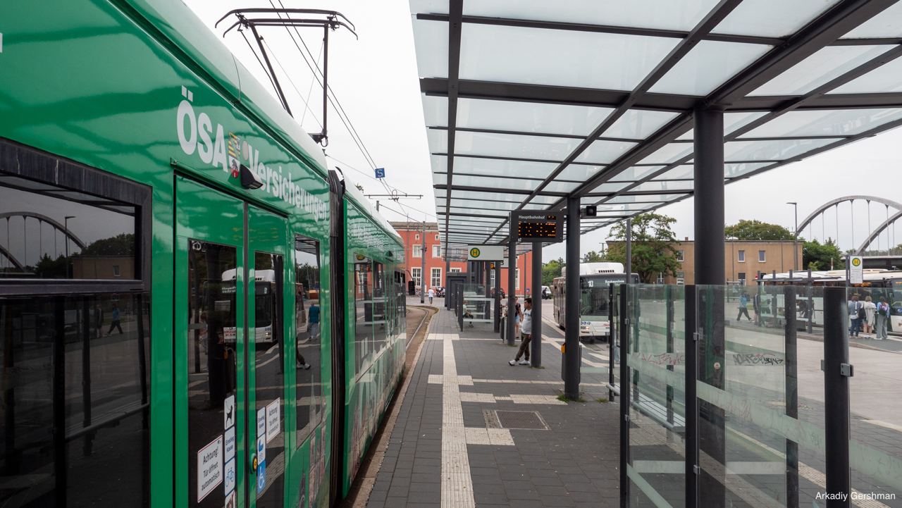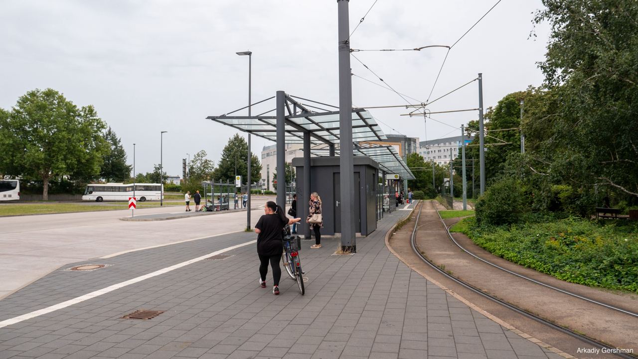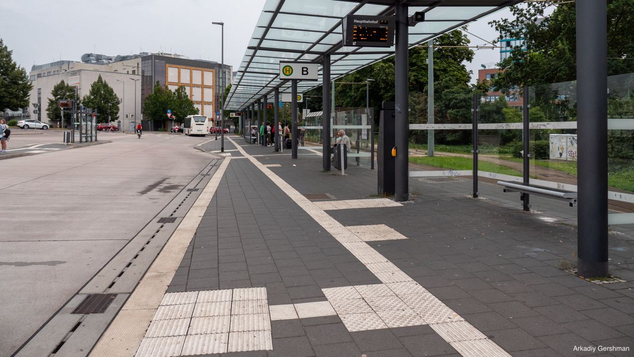 P.S. На платформе ещё есть билетный автомат, схемы и расписание, туалет для водителей и так далее — джентльменский набор в наличии. Плюс на площади есть велопарковка с крышей, но это всё уже не так интересно. Про инженерные чудеса уличных остановок я рассказывал на примере Цюриха не так давно.