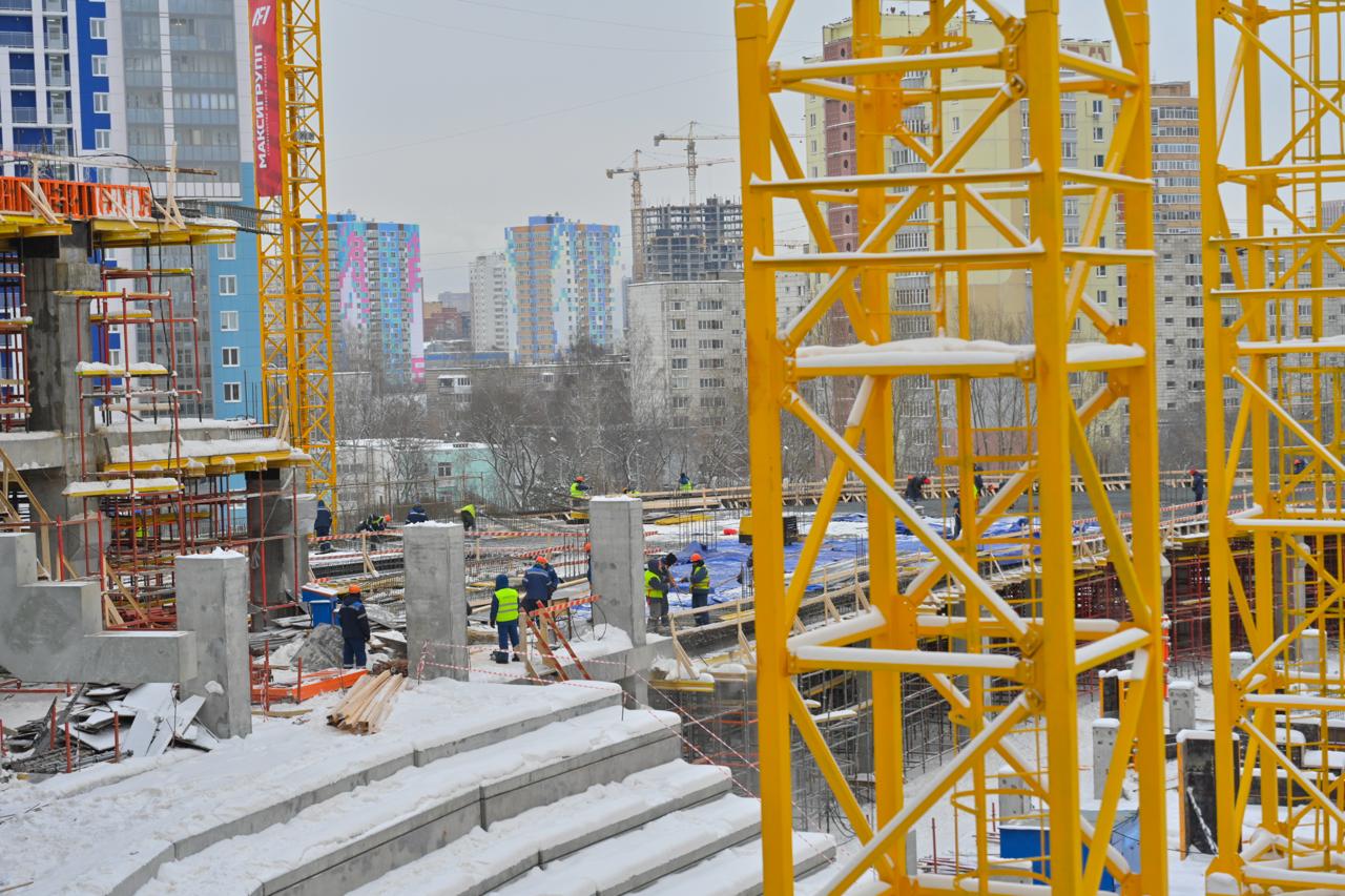 На объекте ежедневно трудятся более 500 специалистов в две смены — строители, монтажники, инженеры. Впереди пиковый этап, подрядчик планирует