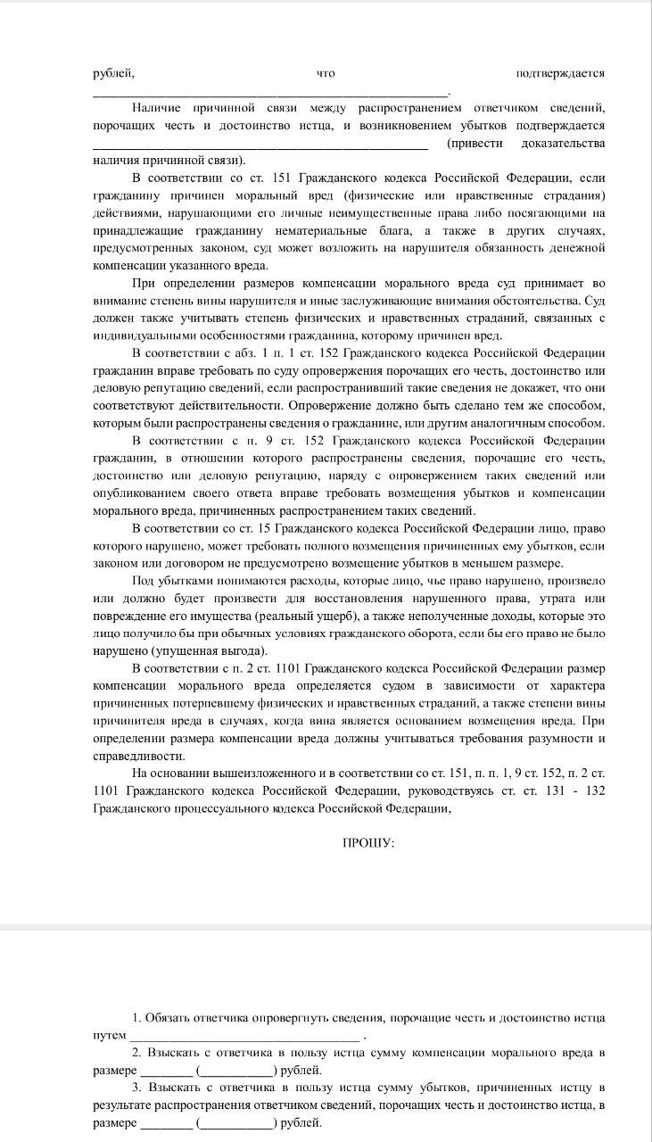 👉В статье 152 Гражданского кодекса Российской Федерации предусмотрено право каждого гражданина на судебную защиту его чести, достоинства и деловой репутации.